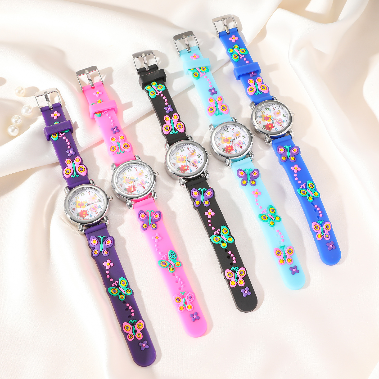新しい既製子供用人気の蝶シリコンクォーツ時計男の子と女の子の学生大きな文字盤