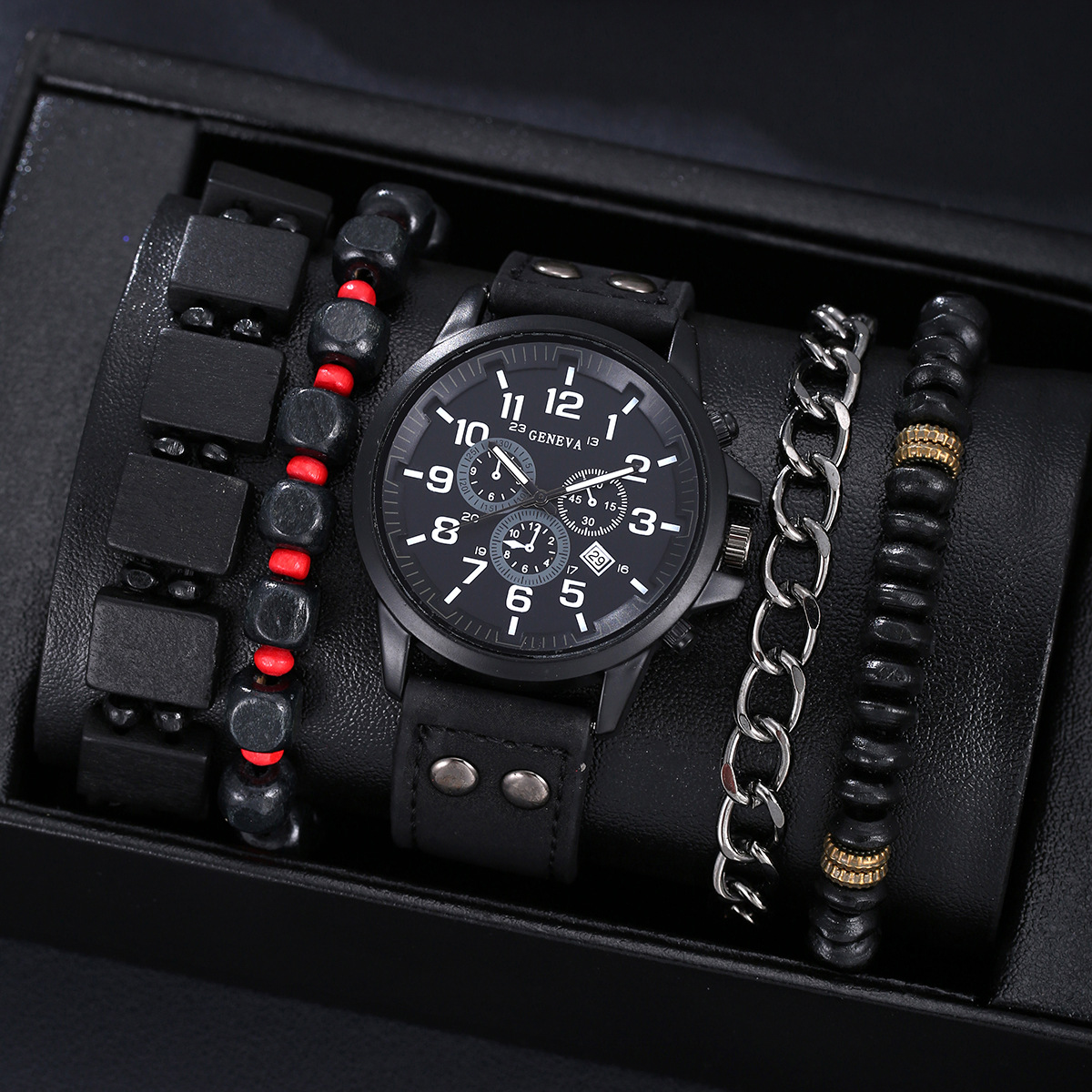 新型シンプルカジュアル創意皮革ブレスレットセットファッションファッション男性石英ベルト腕時計メーカー直販