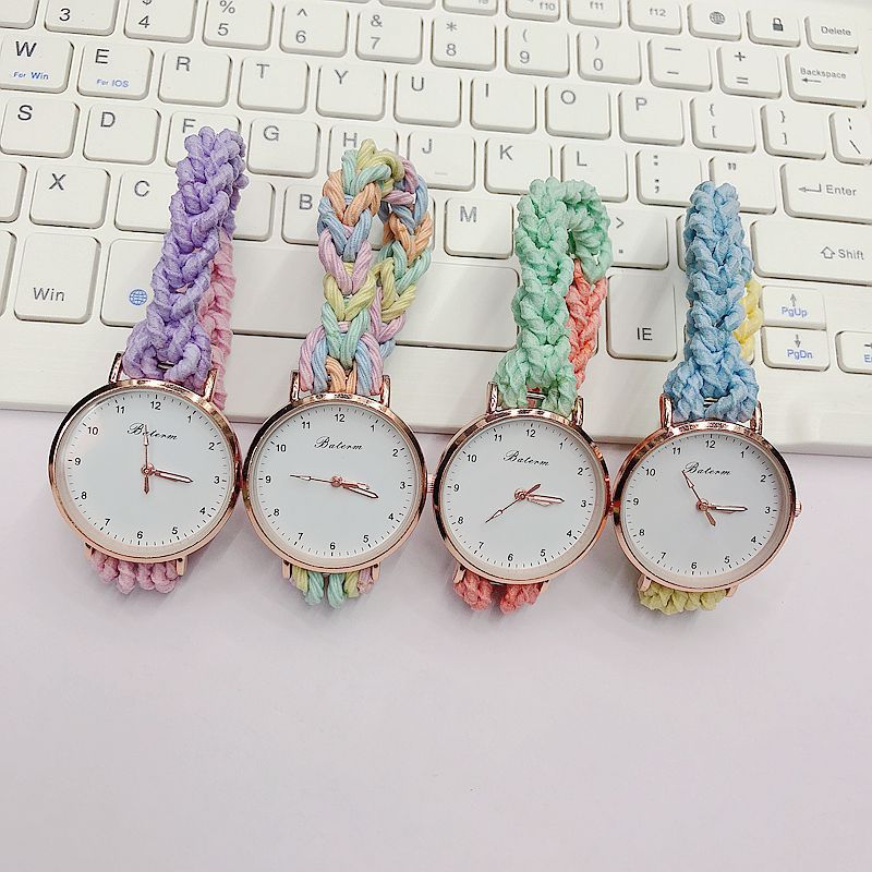 韓国版insデジタルカラーdiy手編みブレスレット腕時計女性小紅本創意皮筋学生手表装