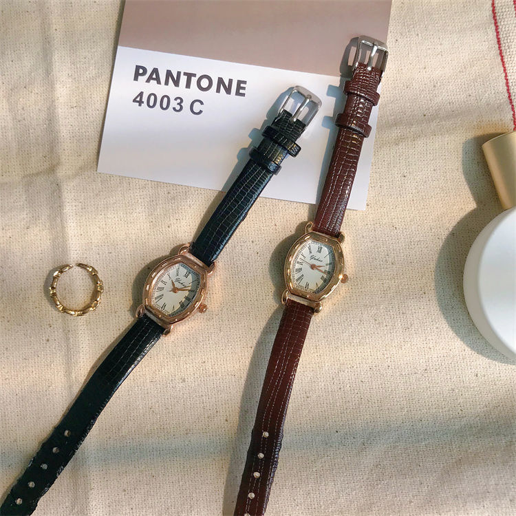 国境を越えて爆発したフランスのレトロで洗練されたシンプルな個性的な樽石英腕時計女子学生レトロなベルト腕時計