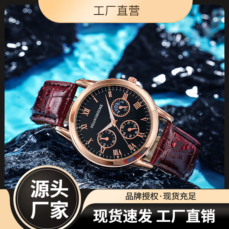 新しいクロスボーダーの爆発の多機能の防水の腕時計の男性の時計の高級な規格品の本革の腕時計の石英の男性の腕時計