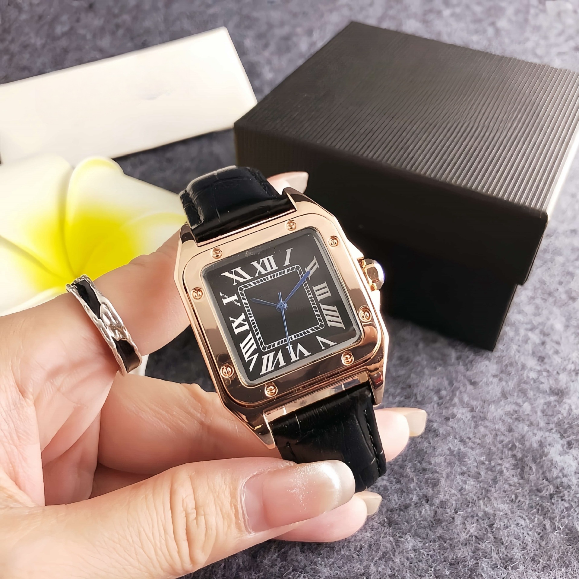 クロスボーダー爆金ファッションシンプル高級大衆軽豪華腕時計大気にシリカゲルクォーツ時計角殻個性時計