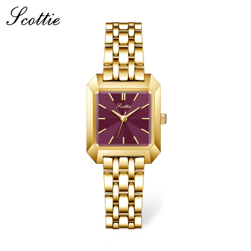 メーカーはscottie角型鋼帯9153女性時計火龍果色小盤腕時計を供給している