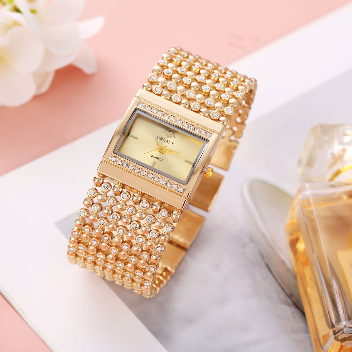 GREALYクロスボーダー新型ダイヤモンド気質女性腕時計ネット赤対外貿易爆金チェーン時計贅沢高級石英時計