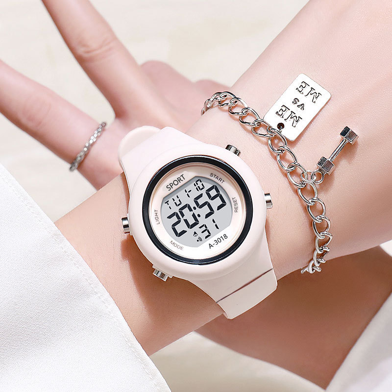 新型腕時計女子防水学生党多機能目覚まし時計時間夜光運動高颜値学生金電子時計
