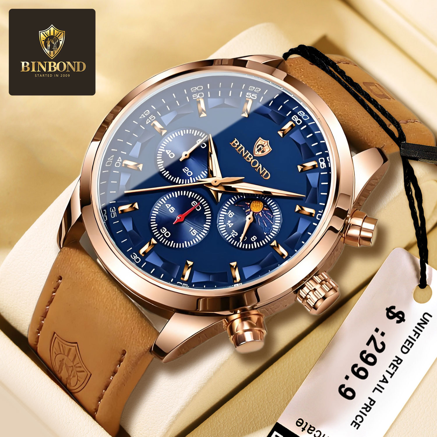 ビン邦BINBONDファッション新型ステンレスバックル男性ビジネスカジュアルクォーツ時計薄いダブルカレンダー男性時計
