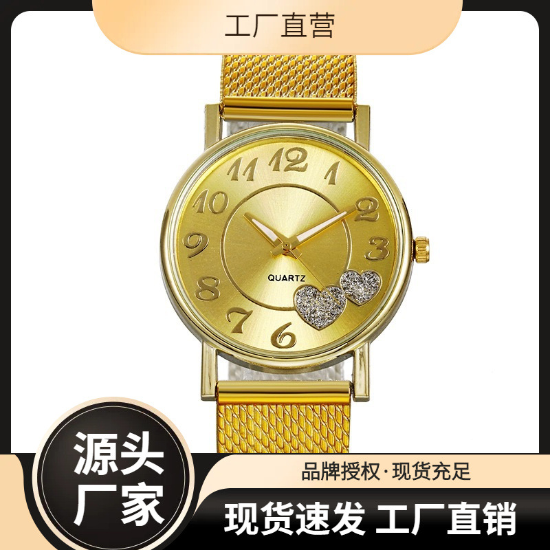 メーカー直販腕時計女性カジュアルファッションネットバンド愛ハート型販売代金桃心女性腕時計卸売り代発