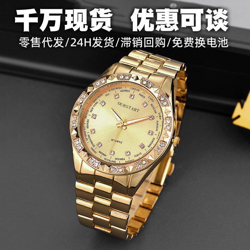 スポットメーカー直販クロスボーダーゴールデンウォッチスチールストリップラインストーンクォーツ時計卸売カップルウォッチハイエンド