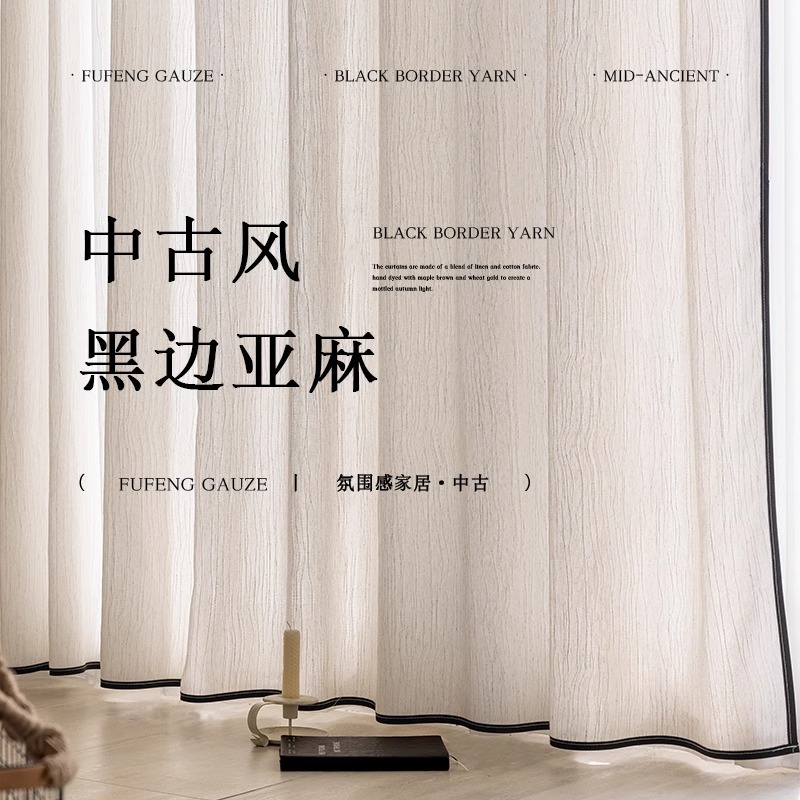 2025年フランス製ウィンドウカーテン、透光性と不透明性を備えたリビングルーム、バルコニー、寝室用リネンブラックエッジウィンドウスクリーン、ポリエステルジャカード
