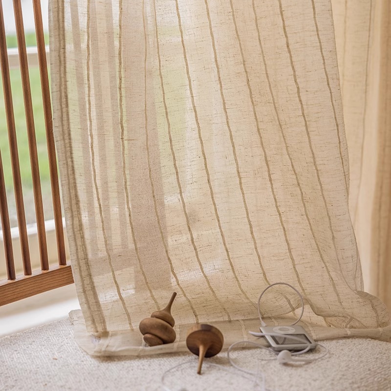 日本式民宿風縦条綿麻亜麻窓紗麻紗簾書斎の窓ベランダは光を通さないで完成品です。