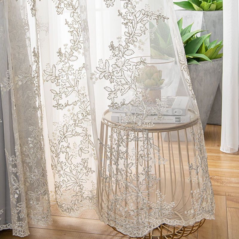 お姫様風刺繍カーテン白い糸半透光遮断カーテンレース窓ベランダリビング完成品カーテン
