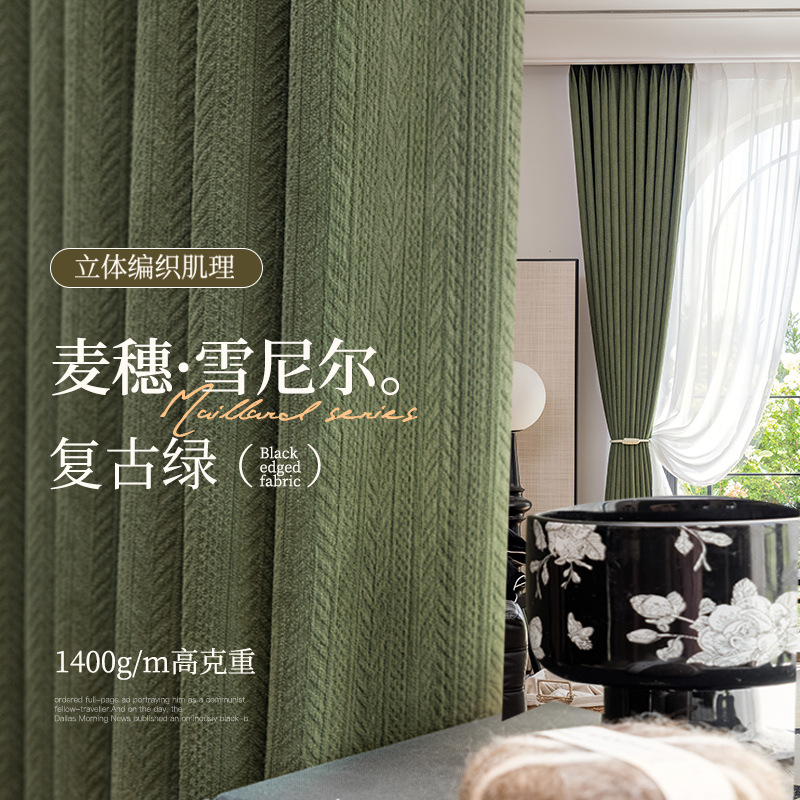 新品ムギ穂ジャカードシェニールカーテン厚手遮光モダンレトロ寝室リビングモダンフルハウス
