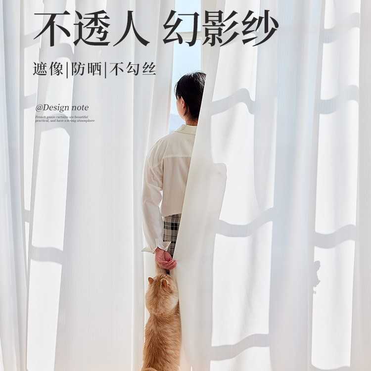 ファントムガーゼ増粘透光不透明ガーゼカーテン日焼け止めリビングルームバルコニー寝室抗引っ掛かりカーテン窓スクリーン白ガーゼ
