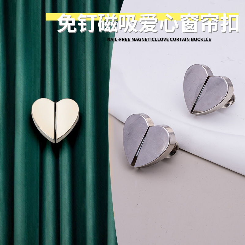 強力な磁気目に見えないカーテン磁気バックルネイルフリーボタンカーテンバックル磁気バックルドアカーテンマグネット縫い目なしハート型義母ボタン