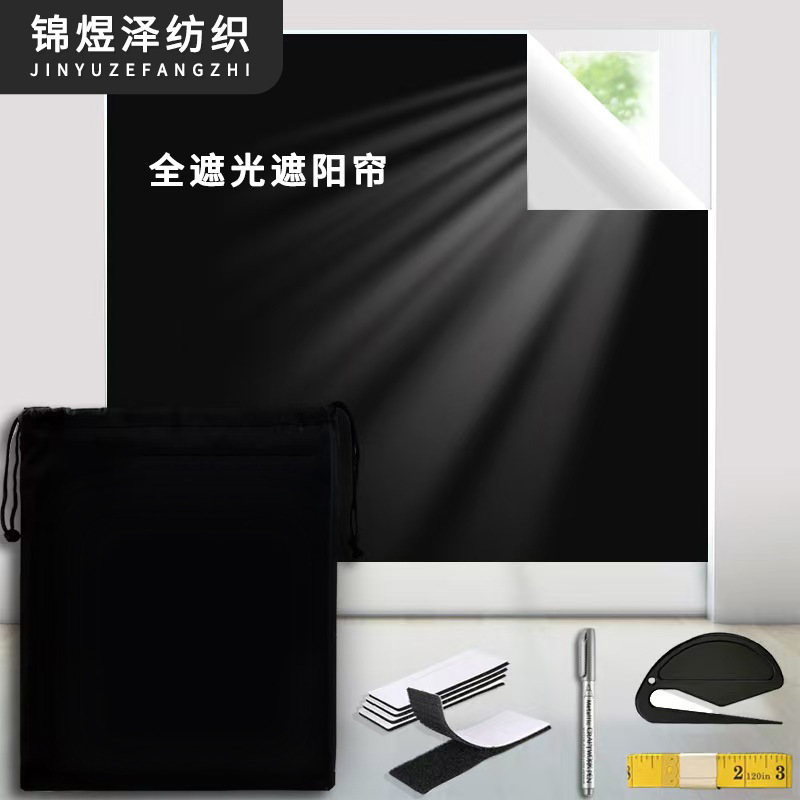 クロスボーダーポータブル遮光カーテン420Dオックスフォード布完全遮光カーテン日焼け止めカット可能旅行用穴あけ不要