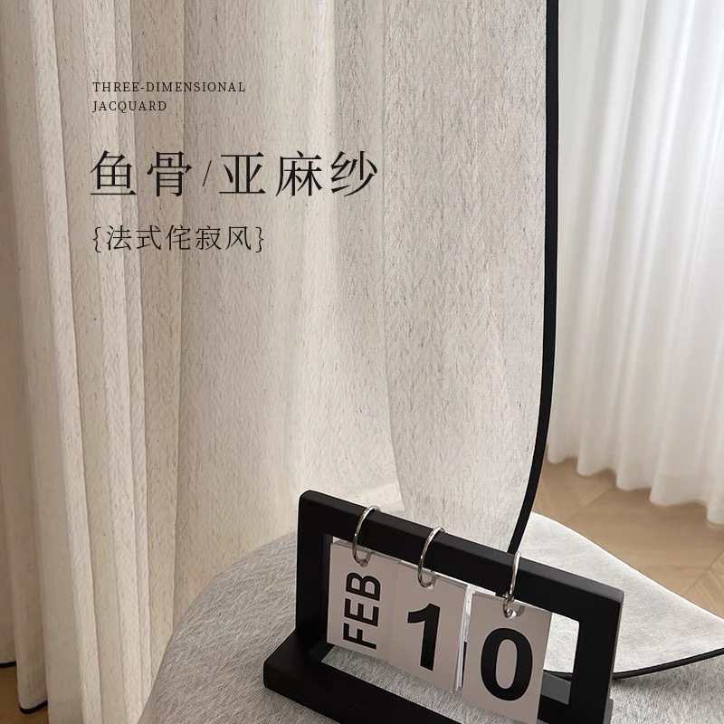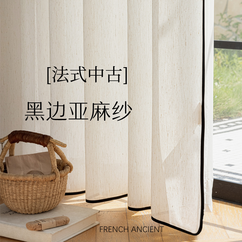 中古風亜麻紗フランスのレトロな光が透けない窓の紗の客間のベランダの2024黒辺の魚の骨の亜麻の紗