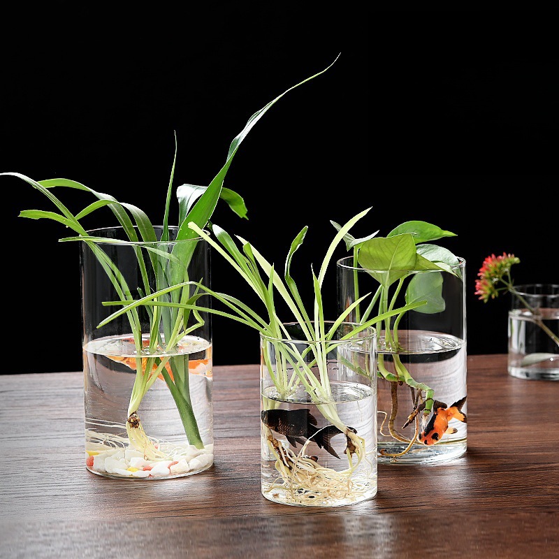 花瓶のガラスの置物の高ホウ素シリコンのまっすぐな筒のガラスの花瓶の緑のロリの小さい魚の水槽の挿し木器の水培の景観の微景観