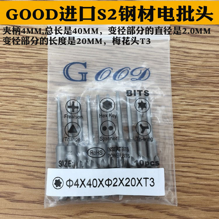 GOOD 4*40*2.0*20 * T3梅型電ロットヘッド電気ドライバーヘッド電動ドライバー磁気付き
