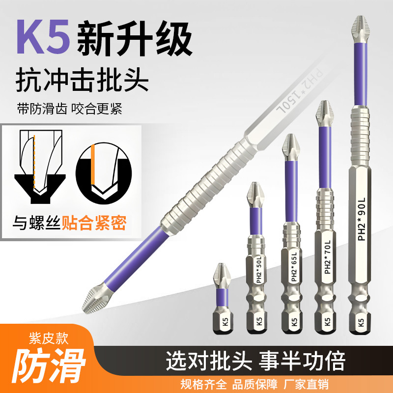 K5 滑り止めクロムメッキ耐衝撃性強力磁気クロスビット高トルクハンドドリル電動ドライバー超硬ドライバービット