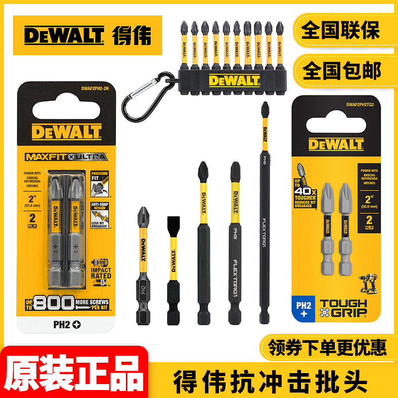 原装得偉DEWALT十字一字耐衝撃ヘッドSL8高硬度ヘッドPH2六角柄ドライバーヘッド