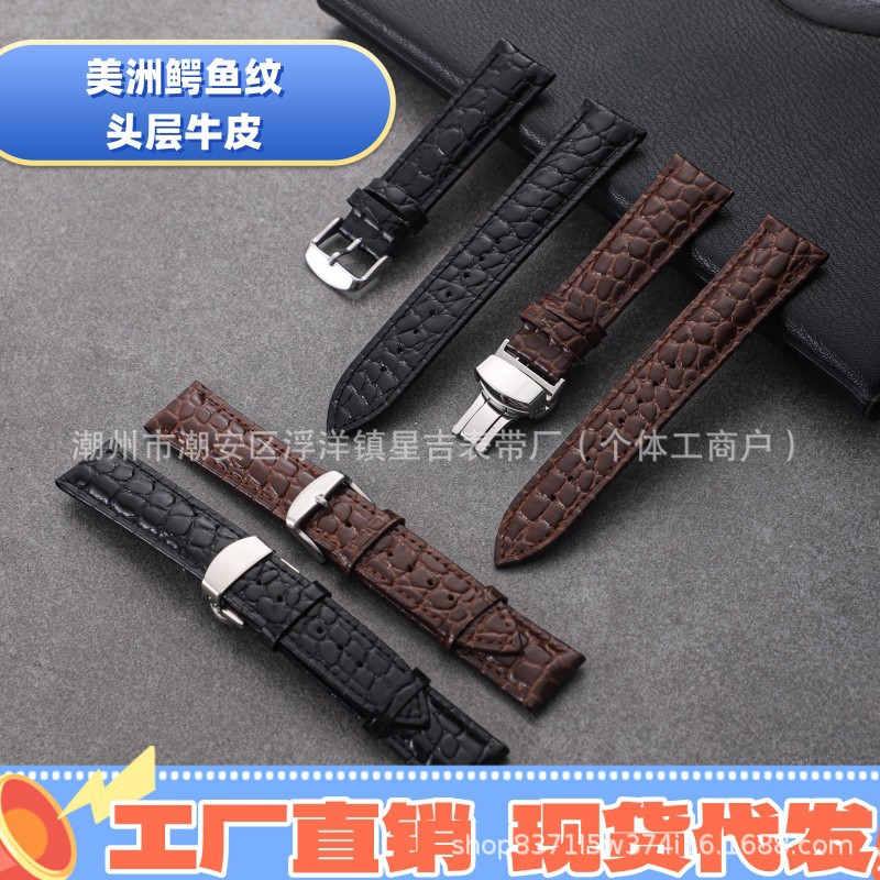 現物の本革の頭層の腕時計バンドの男性の丸い紋様のワニの紋様の牛革の針は蝶々を押して腕時計の腕時計の部品を掛けます。