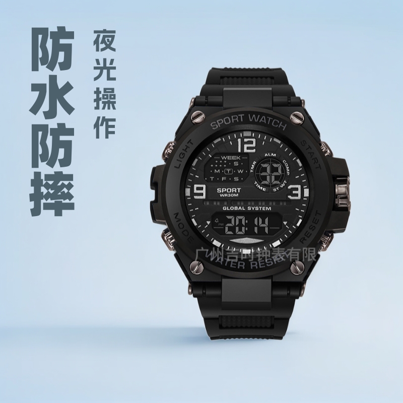 腕時計工場直営多機能運動ファッション転倒防止夜光百合双顕電子時計ソースクロスボーダー起爆金
