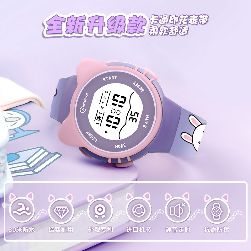 新型プリント腕時計女性防水多機能夜光アラーム子供かわいいアニメ電子腕時計輸入ムーブメント