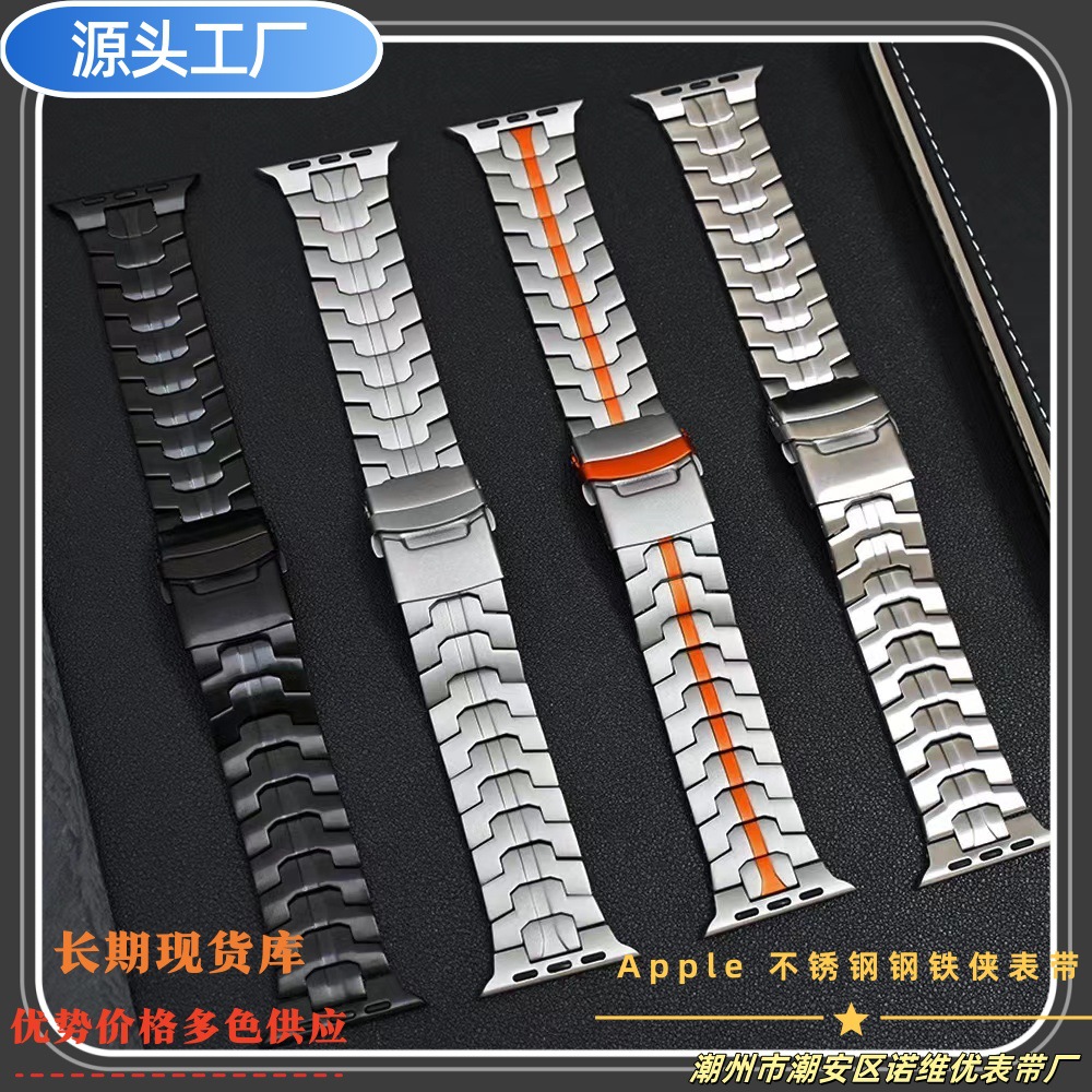 Apple Watch 5/4/6/8/7対応 チタン合金製 アイアンマン風メタル iWatch スマートウォッチ カメバックル