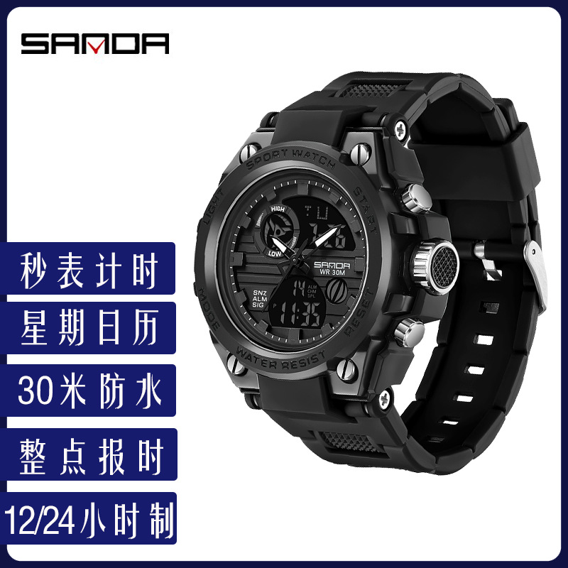 三達SANDA熱売電子時計多機能大文字板双顕運動腕時計夜光防水学生腕時計