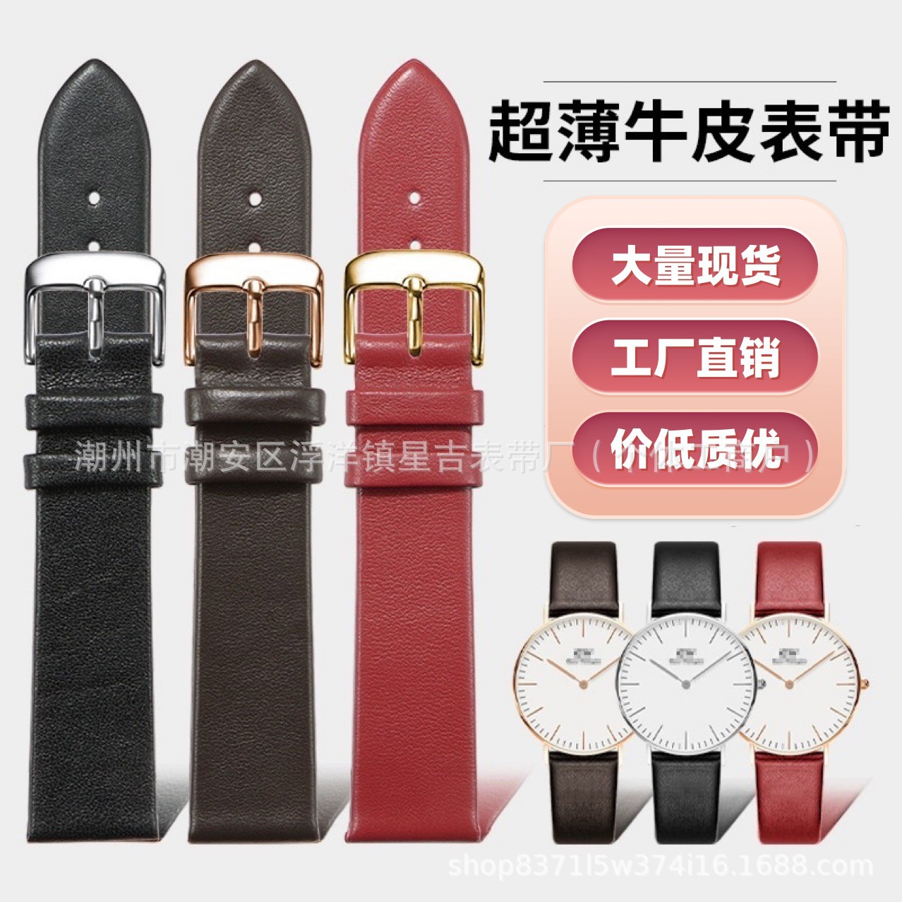 現物卸売り牛革真皮バンド柔らかい超薄型平織り針紋腕時計バンド男性女性共通時計チェーン部品