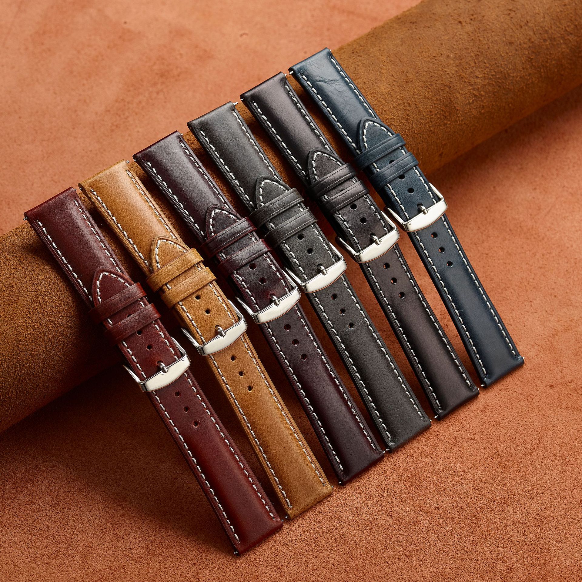 新しいスポットオイルワックスレザー本革時計ストラップ光沢のあるユニバーサル第一層レトロ時計ストラップアクセサリーピンバックルソフト