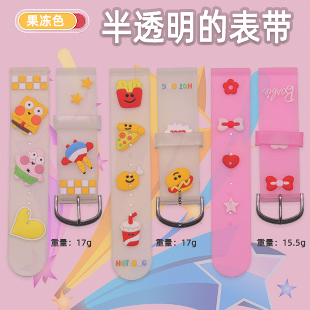現在のモデルは22mmシリカゲルのシンプルなゼリー色の腕時計バンドの男女のファッション時計の部品の9格は大きさを調節して仕入れます。