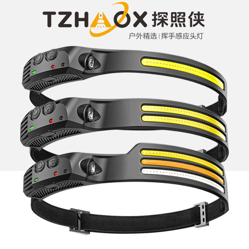 クロスボーダー新シリコン誘導ヘッドランプ USB 充電式 LED 赤、白、黄色のライト屋外ランニング COB ヘッドランプ防水
