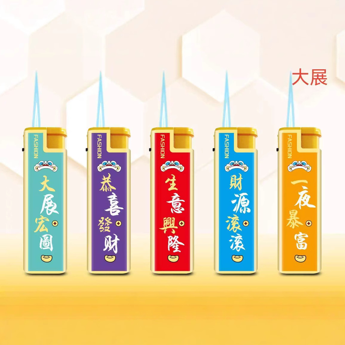 新しい使い捨て防風ライター直火カスタムメイド印刷された青い炎直接耐久性のある金属ライター