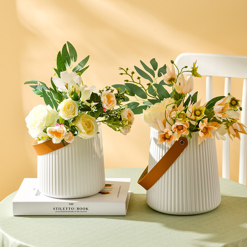 軽い贅沢な手提げ袋の花瓶のプラスチックの家の置物の現代の簡単な水培の生花の生け花の器の柔らかい装飾の置物