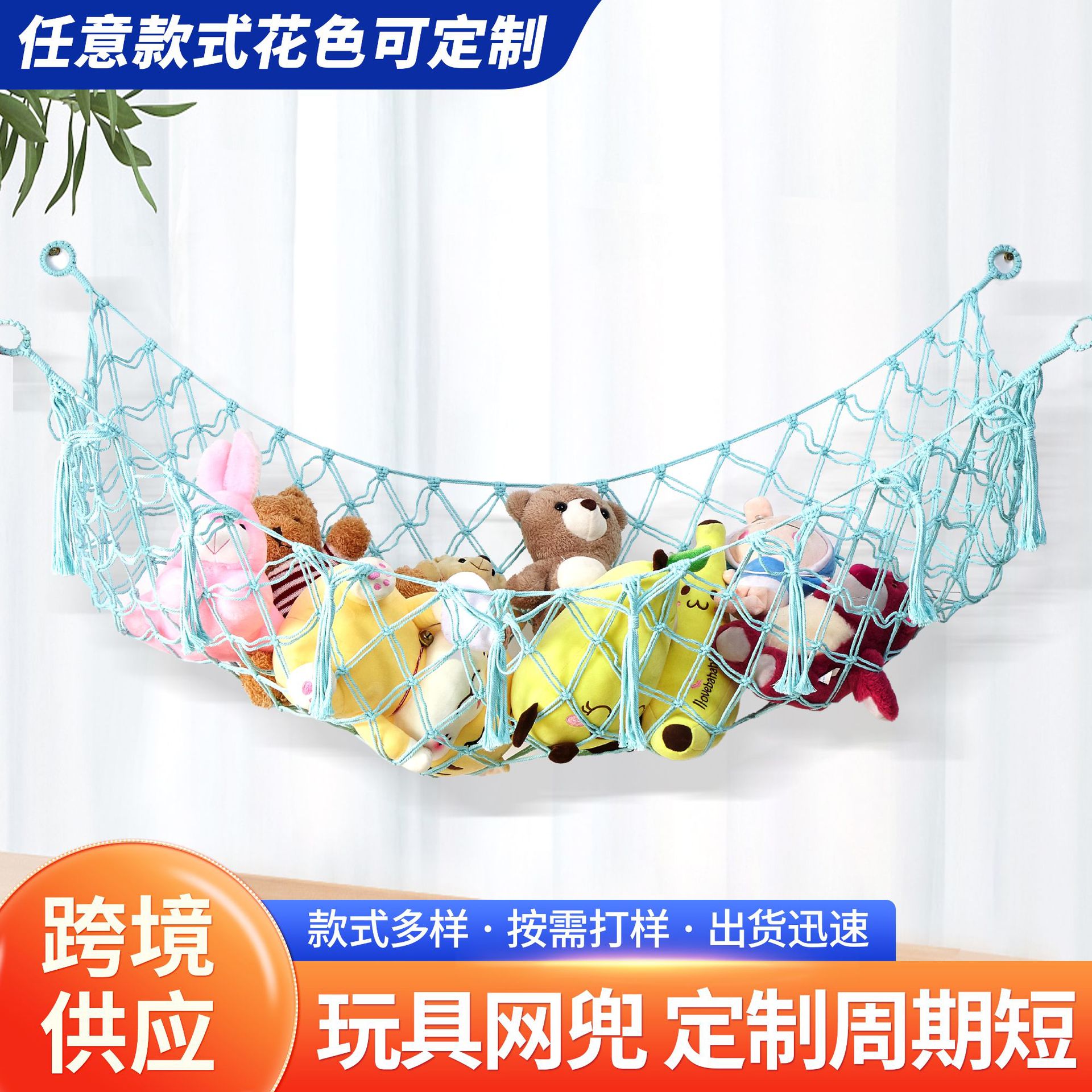 マルチカラー四隅おもちゃネットポケットおもちゃ人形収納ハンモッククロスボーダー手作りタッセル装飾おもちゃ壁ポケット