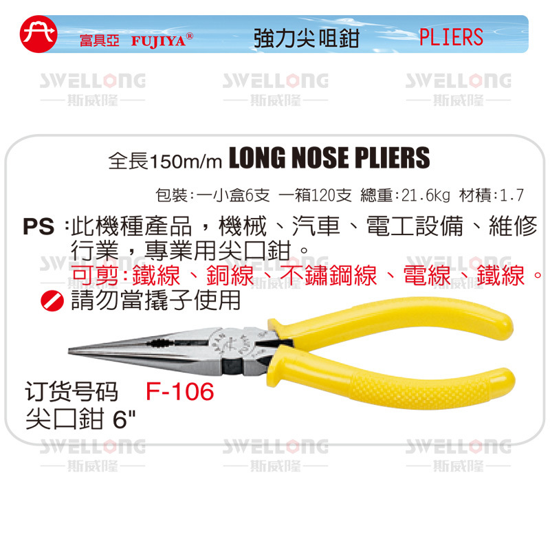 富具亜fujiya強力尖口鉗子F-106/106aa/106x/106rr/106bb/106cc/110
