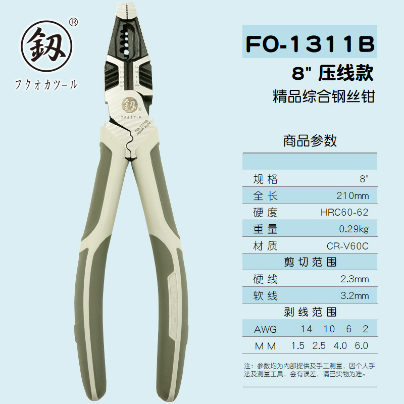 福冈ツール8インチ総合ワイヤークランプ手动プライヤー断线圧线糸剥きワイヤークリップFO-1311B