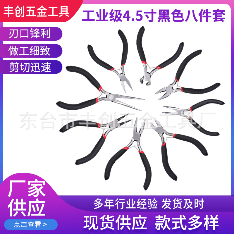 手作りアクセサリー道具DIYペンチ4.5インチ黒8点セット黒赤ハンドル尖口ペンチ宝石ペンチ