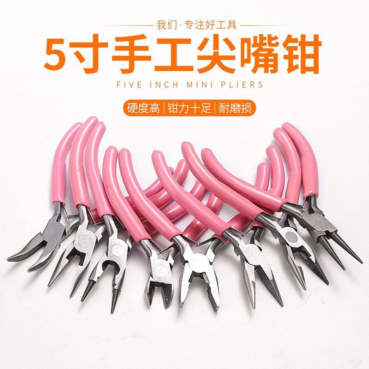 ピンクのハンドルミニペンチ手作りdiyセット5インチ無歯アクセサリーペンチジュエリーペンチ