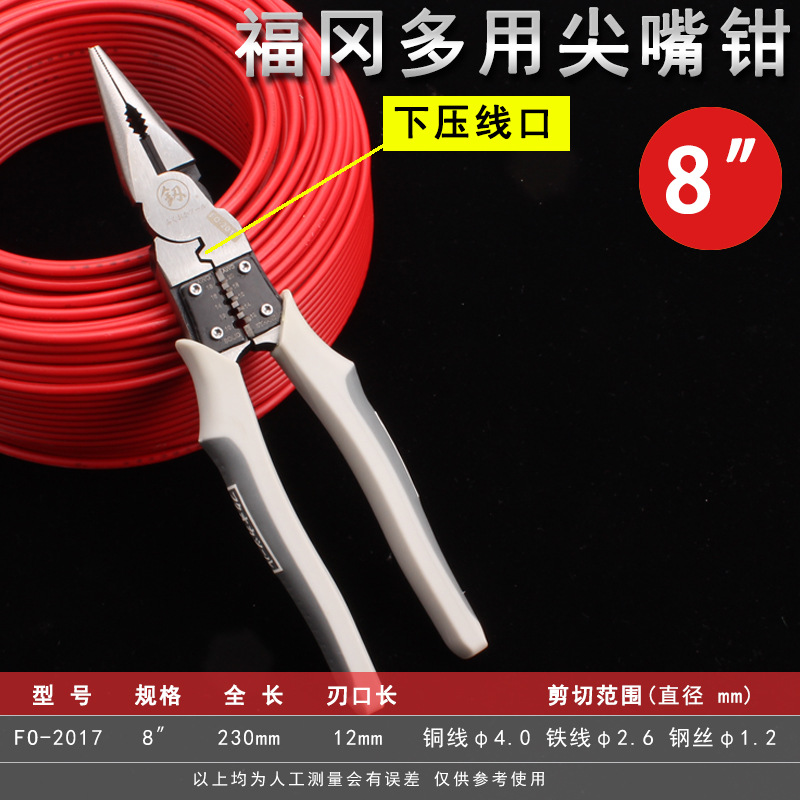 福岡 多用途 8inch ノーズペンチ ワイヤーカッター 手動ワイヤーストリッパー ポインテッドノーズペンチ FO-2017