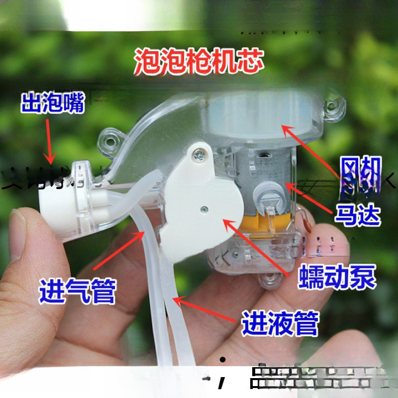 バブルガンのムーブメントのフルセットは、インフレーターポンプ、蠕動ポンプ、バブルブローモーターを含む電源で使用できます。
