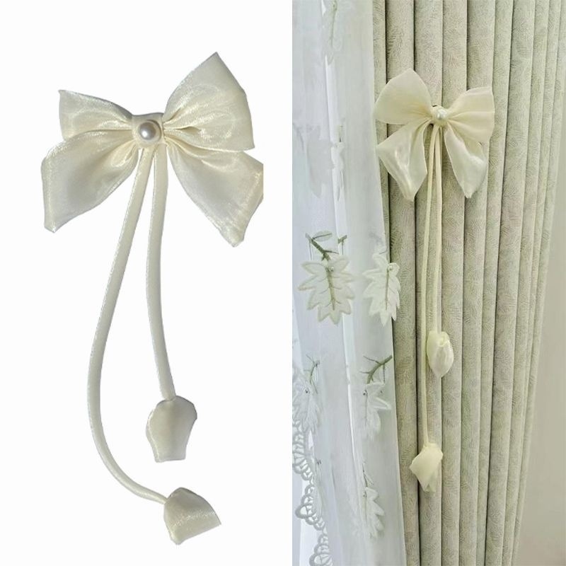 超仙小紅のカーテンの蝶結びは花のサイドのカーテンの真珠の手作りの窓飾りを飾ります。