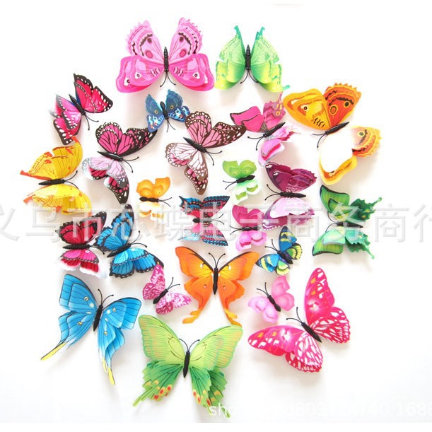 3D 立体二重層蝶家の装飾模擬蝶 pvc カラー蝶壁ステッカーピンスタイル