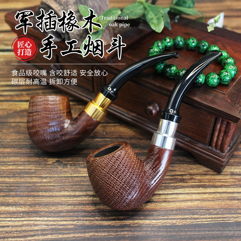 ミリタリープラグオーク手作りパイプ大型アルミリング無垢材パイプ伝統的な 9 ミリメートルフィルタードライパイプタバコパイプ手作り
