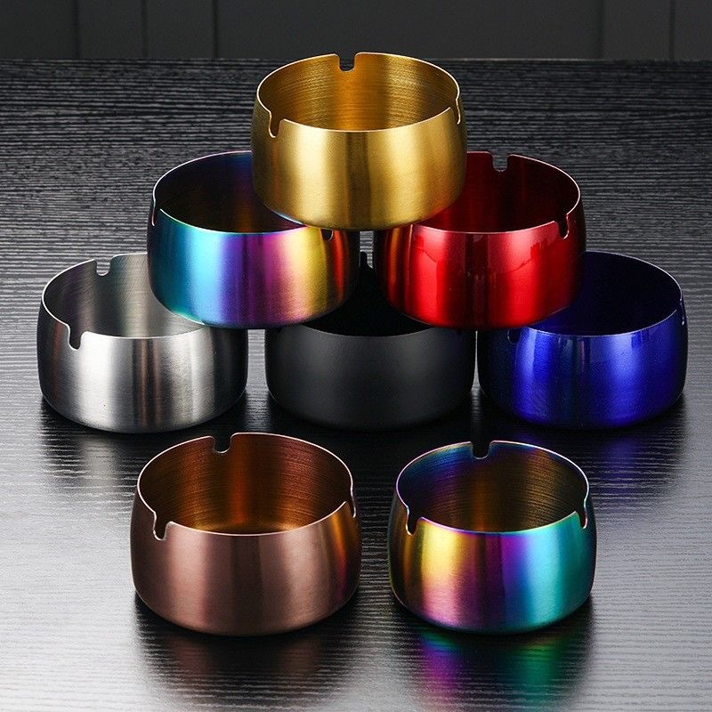 クロスボーダー厚みのある落下防止金属ステンレス鋼灰皿インハイエンドギフト灰皿卸売カスタムプリントロゴ