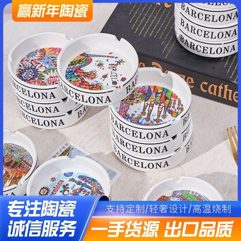 セラミック灰皿シンプルでクリエイティブなファッション灰皿のアルファベット円形輸出灰皿にロゴ卸売りを加えることができる