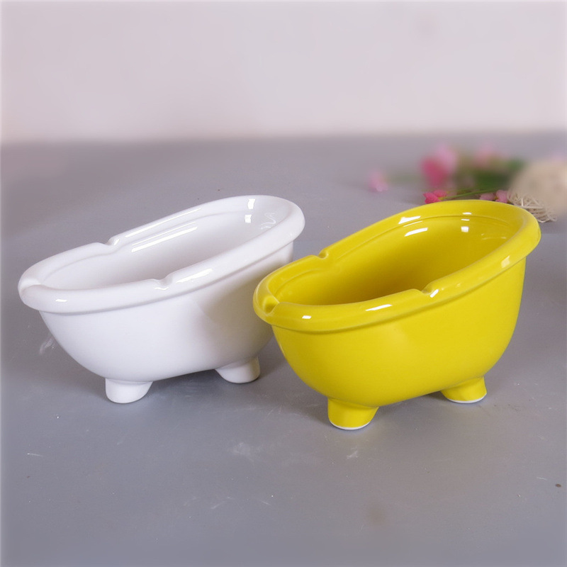 ミニバスタブセラミック灰皿黄色バスタブプラスロゴセラミッククリエイティブファッション便器型灰皿