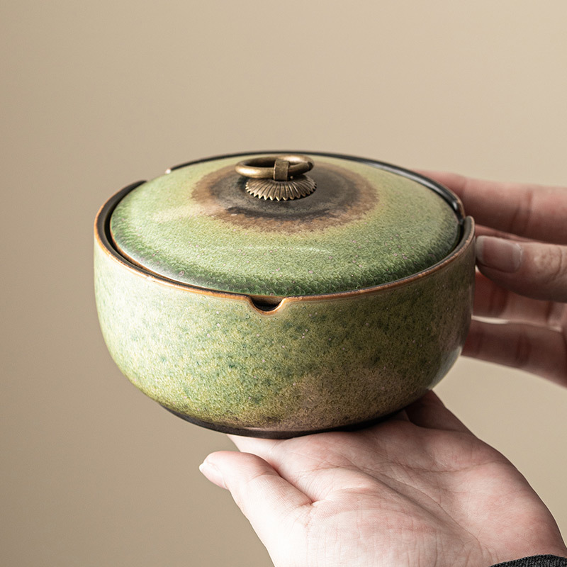 窯変灰皿創意個性潮流蓋付きレトロ中国式陶磁器灰皿家庭用リビングオフィス専用