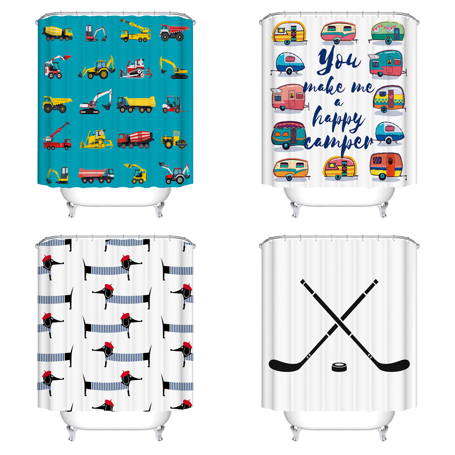 日本式国境を越えた電気商の供給源児童ポリエステル生地デジタルプリントシャワーカーテン小自動車浴室防水遮断カーテン